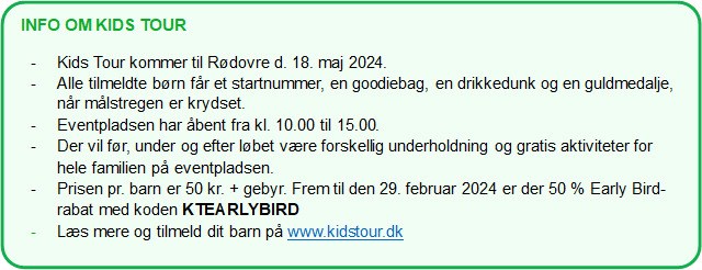 Spænd cykelhjelmen og sus afsted på cyklen, når Danmarks største og sjoveste cykelløb for børn, Kids Tour, igen i år kommer til Rødovre. Det sker lørdag d. 18. maj ved Rødovre Centrum, gul parkering.