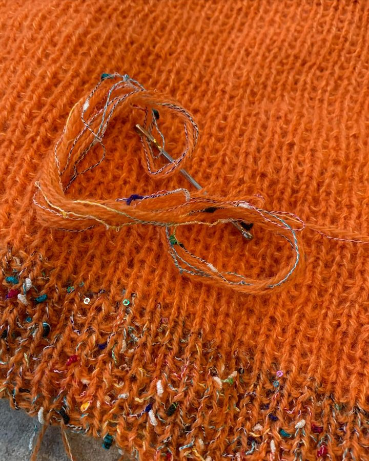 Får du også lyst til at lege lidt med skøre farver en gang imellem🧑🎨🎨? Min skøre orange vest skrider fremad. 🧶🧶🧶Jeg leger med Isager Tvinni og Isager Silk mohair tilsat lidt paillet og Make it...